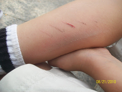 Heading downtown, we had our fist injury. My son told me to take a picture for the blog. Of course. Then I cleaned it up and gave it a kiss. (Yes, as director of Daddy Day Camp, I have a little fist aid kit in my back back.)
